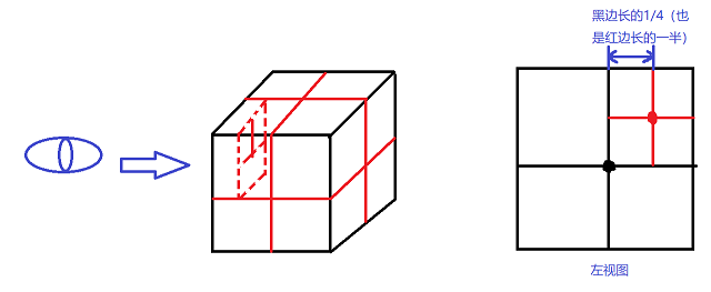 简单分析可知, 每个子节点中心的位置都是从父节点中心偏移 四分之一 父节点边长 而来