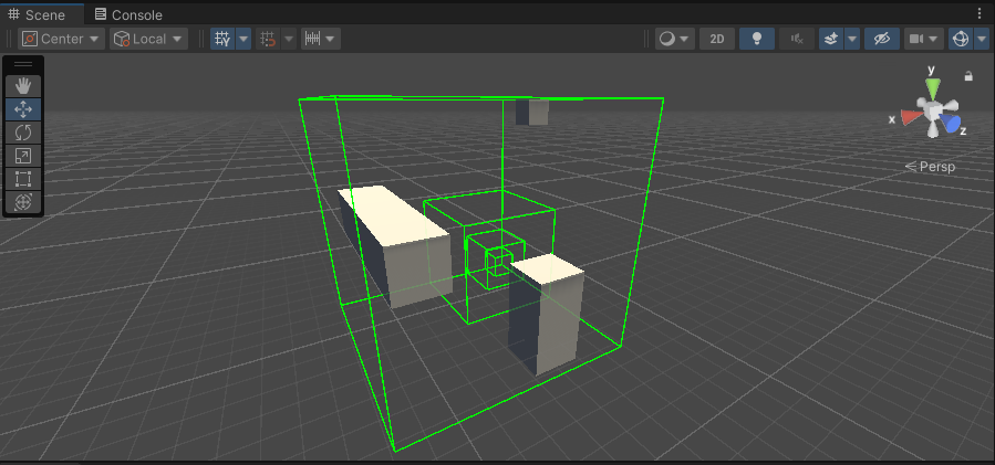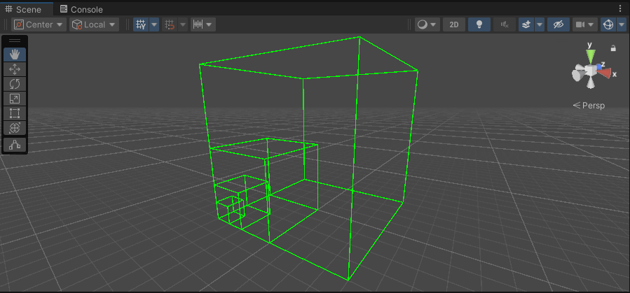 }为了方便观察结果,在类中添个用于绘制方块的函数,当它在OnDrawGizmos中调用时就可以看到方块了